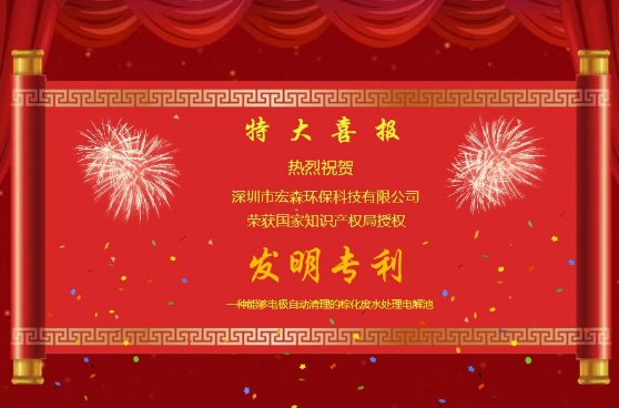 回首過去的一年,宏森環保敢于迎接市場變化,在工業廢水處理領域取得了斐然成績!在2023年即將過去,2024年即將到來的美好時刻,宏森環保又獲得了一份令人振奮的喜訊:榮幸獲得了國家知識產權局授權的發明專利一種能夠電極自動清理的棕化廢水處理電解池。